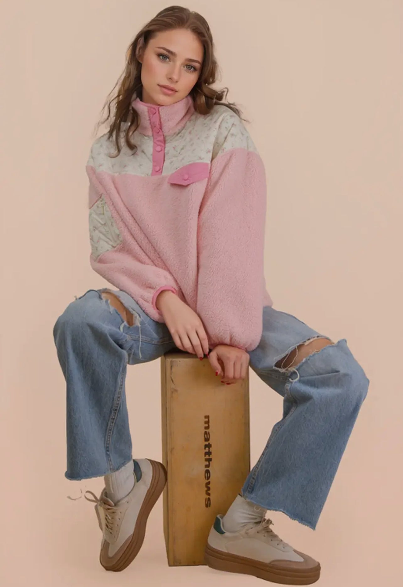 Floral Quilted Contrast Detail Fleece Casual Top