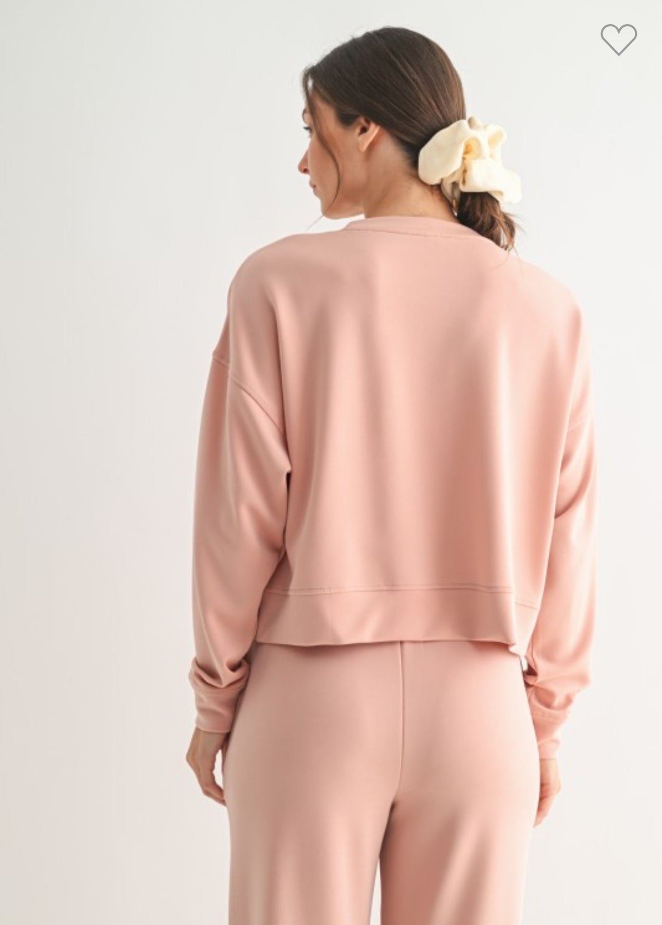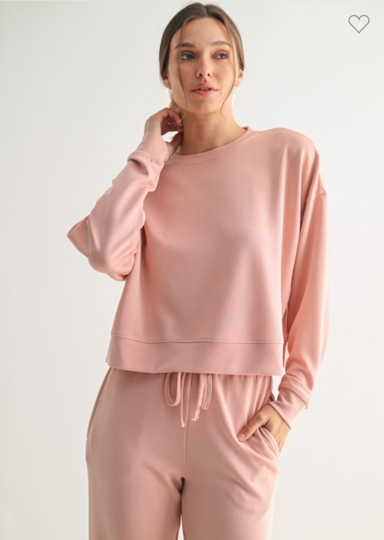 Meet your new favorite sweatshirt. Designed with a boxy-fit waistband for ultimate comfort, this sweatshirt feels as soft as butter and as light as a feather. The dropped shoulder design adds a touch of relaxed sophistication, making it perfect to pair with your favorite scuba pants or shorts. Elevate your casual wardrobe with this versatile piece that effortlessly combines style and coziness. Whether you're lounging at home or stepping out, this sweatshirt will be your go-to for a look that's put together yet undeniably comfortable.
