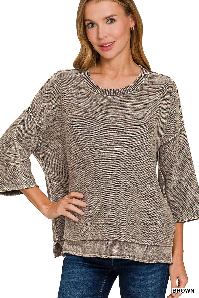 Washed 3/4 Sleeve Sweater