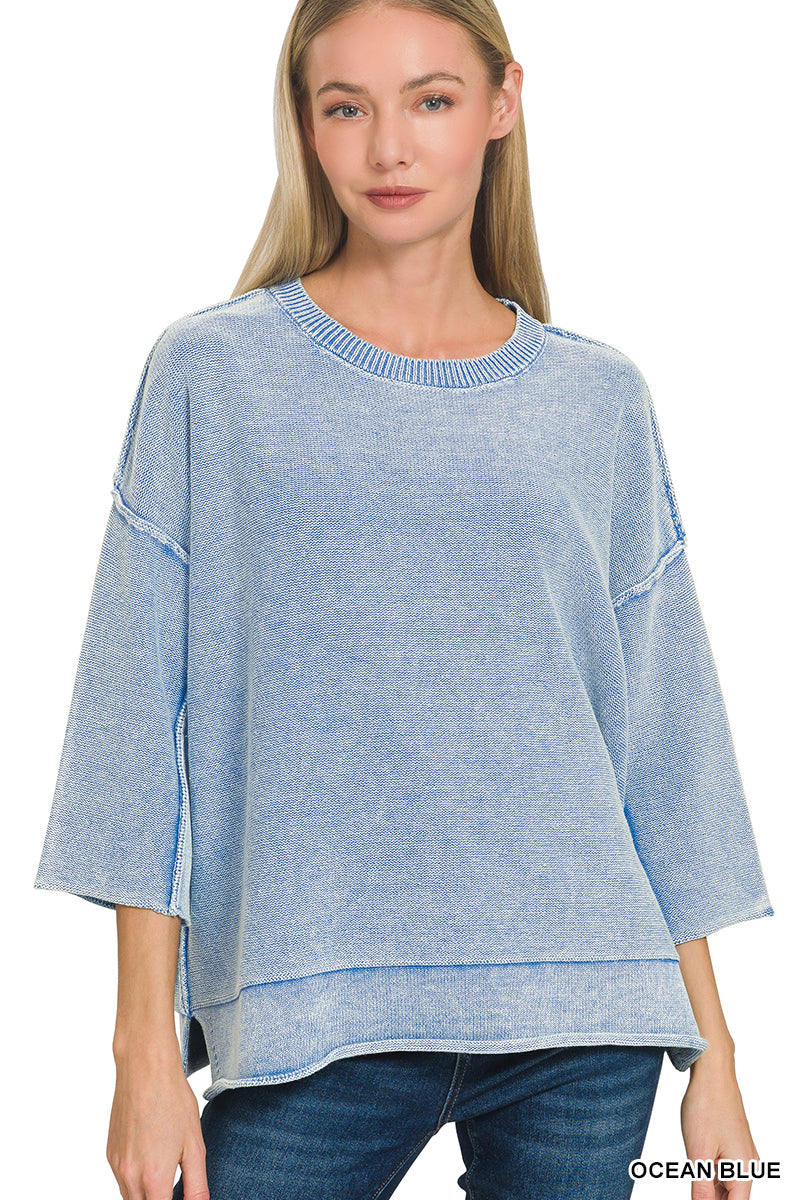 WASHED 3/4 SLEEVE BOXY SWEATER